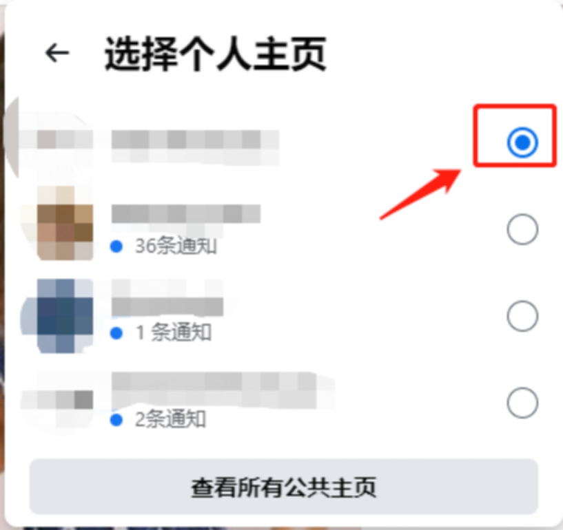 1、在Facebook首頁,使用有公共主頁管理員權(quán)限的賬號(hào),按圖示操作,打開“查看所有個(gè)人主頁”