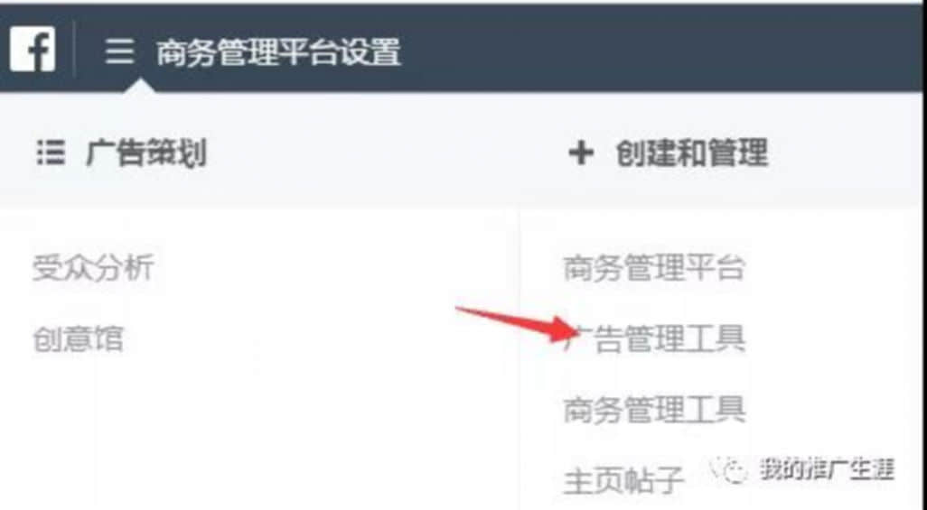 然后點(diǎn)擊“廣告管理工具”,你就可以用剛創(chuàng)建的新的廣告賬戶來(lái)跑廣告了。