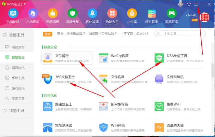 3. 點擊功能大全,,選擇數據安全,選擇右側NSA免疫工具.