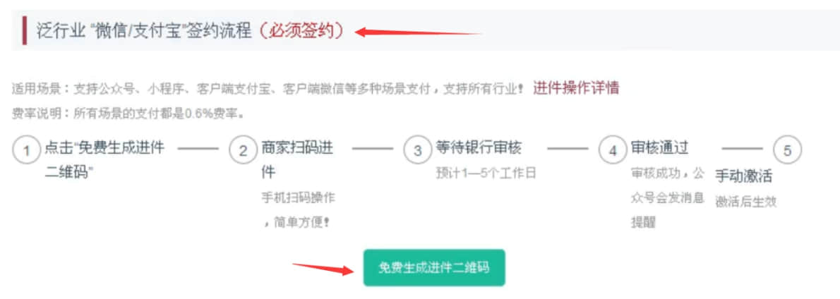 2、【簽約管理】----點擊【免費生成進件二維碼】