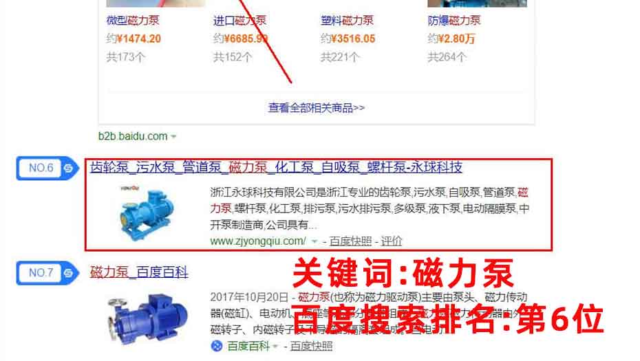 盛世傳媒為永球泵閥提供相關關鍵詞百度排名優化服務!